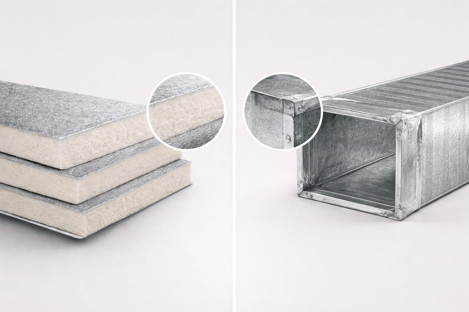 AluPir Duct System é um sistema em painel de alumínio pré-isolado para dutos HVAC, fabricado pela Rocktec, desenvolvido para projetos de engenharia que exigem desempenho térmico, leveza estrutural e confiabilidade industrial.